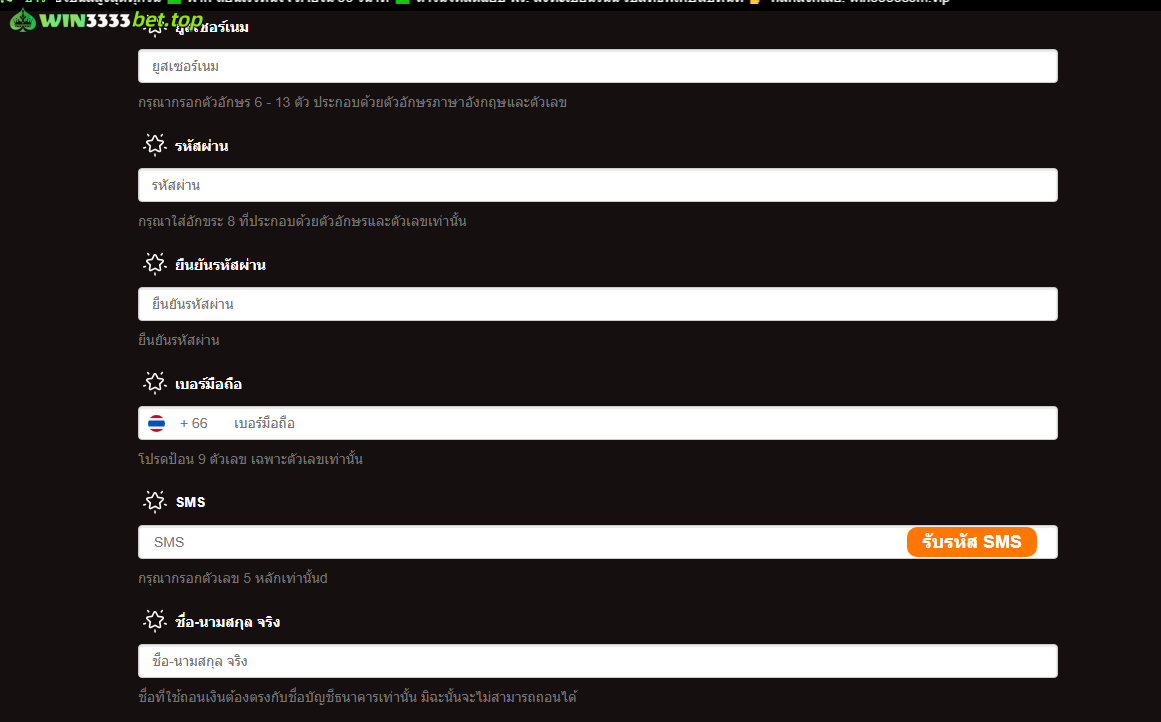 - กรอกข้อมูลผิดหรือไม่ครบถ้วน: win3333 ต้องการข้อมูลที่ถูกต้องและครบตามแบบฟอร์ม หากมีข้อผิดพลาดจะไม่สามารถยืนยันได้